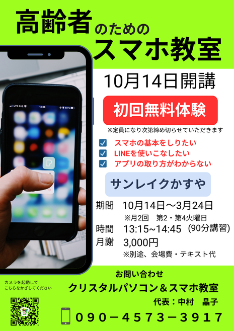 スマホ教室(iPhone,Android)は、サンレイクにて開講中です。